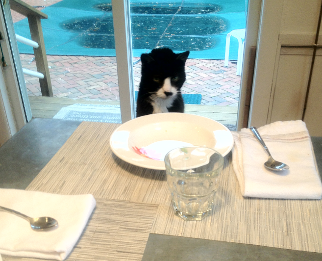 As she had her for eight years before we met, Hank’s a pretty old cat, probably around 19 at this point. Nevertheless, Hank has, in the past year, come around to thinking he’s a dog.