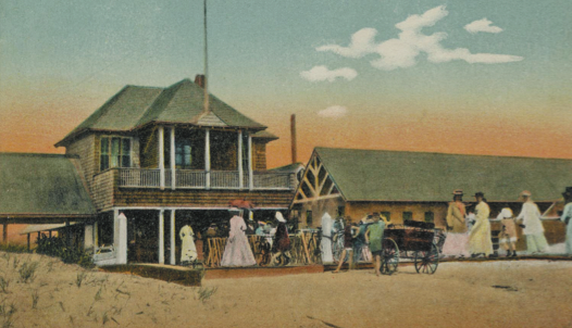 The locals dressed in simple rural attire, of course. And they did take time out for beach bathing. At one particular location, near to where the Southampton Bathing Association is today, they had established a group of beach shacks, which they called “wigwams,” where people could change into bathing suits and from there go for a swim.