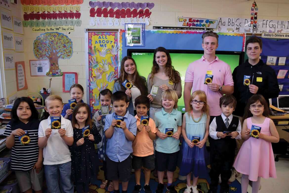 Westhampton Beach High School’s Virtual Enterprise class presented all elementary students in the district with packets of sunflower seeds featuring a special poem on May 15.
