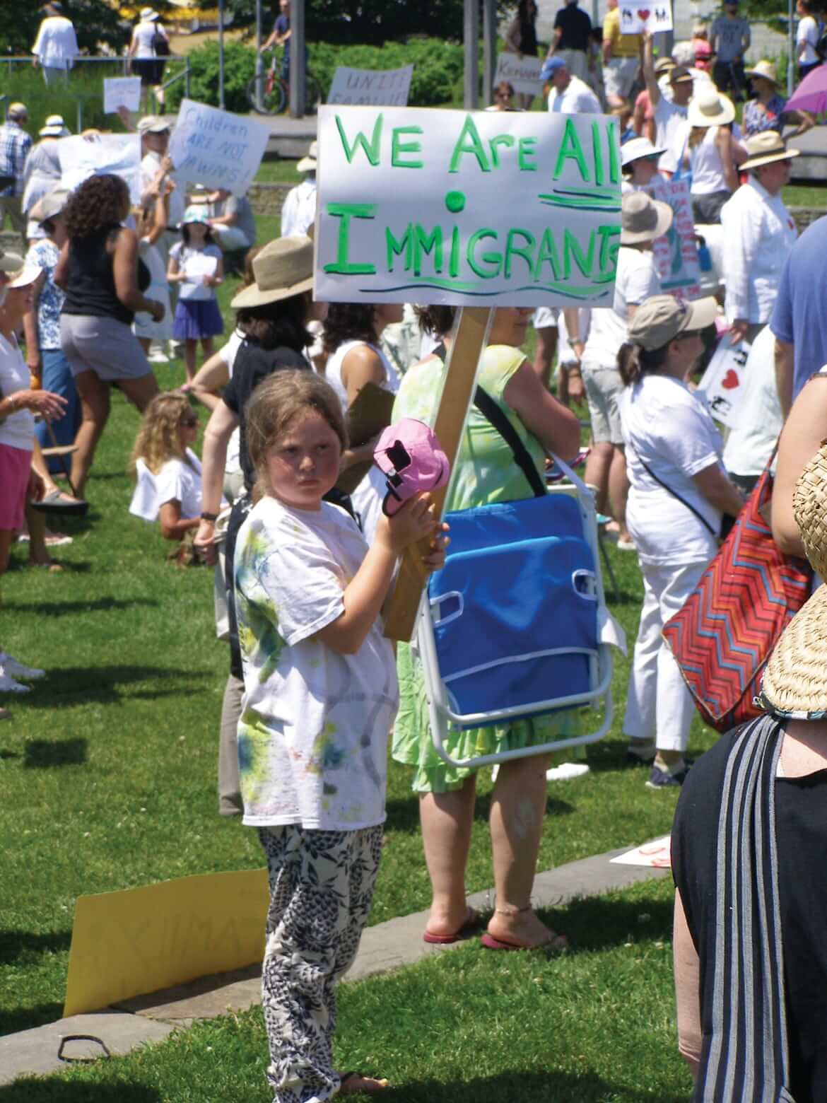 Attendees wore white in solidarity and gathered by the water in Mitchell Park. Adults and children held an array of hand-made signs that shared messages aiming to put an end to the family separation policy, which has separated more than 2000 children from their parents at the U.S.-Mexico border.