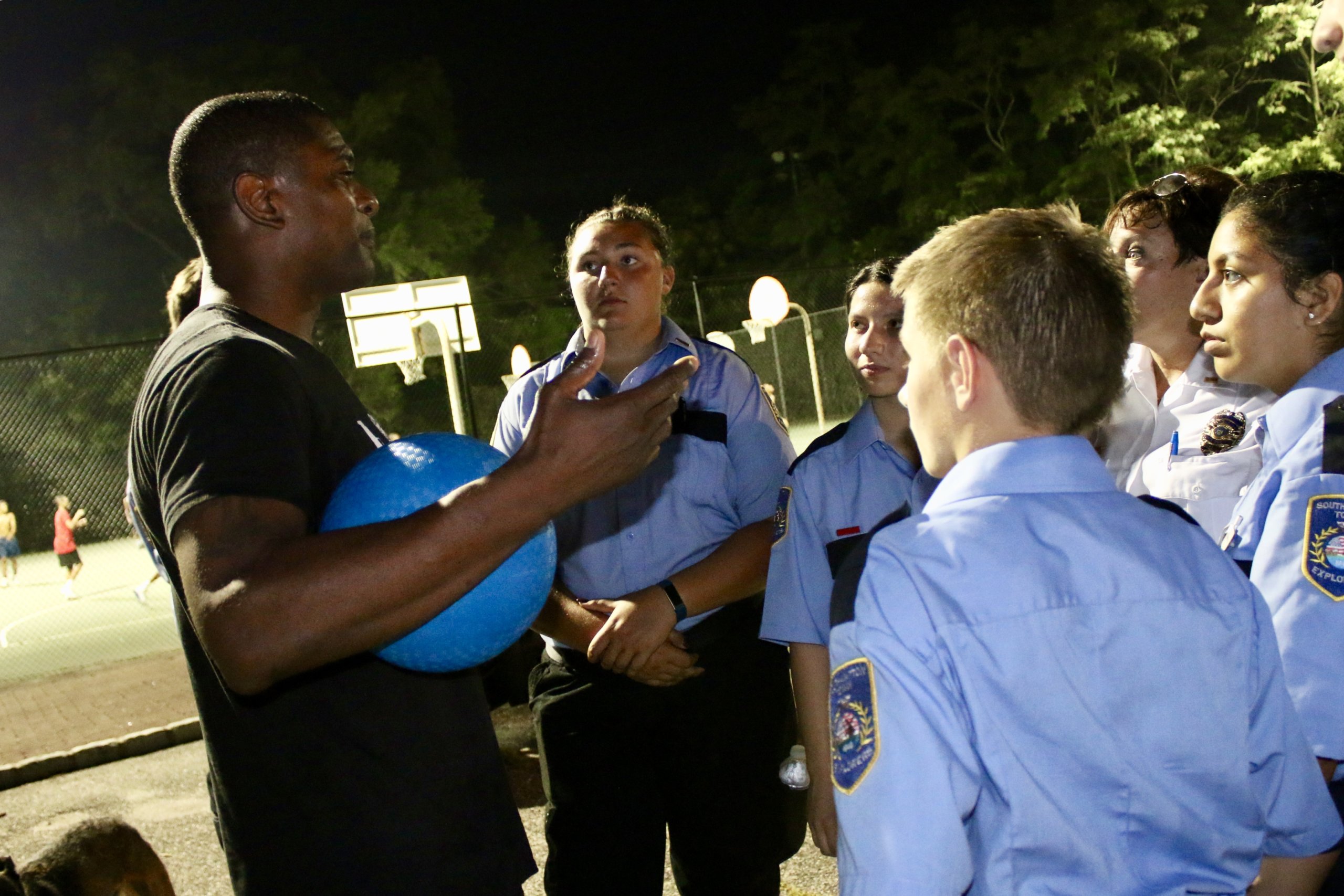 The former gridiron star, who is the spokesperson for the National Police Athletic League, dropped by to lend his support for the event, which celebrates the relationship between the community and law enforcement. He passed around a football, shot some hoops, and chatted with the teens about their plans for the future. In a safer version of the Kiki Challenge, the teens, who included a group of police explorers, jumped out of Southampton Town’s police cars. Brewer himself got behind the wheel of an armored car, and even some of the police officers waved their hands in the air like they just didn’t care.