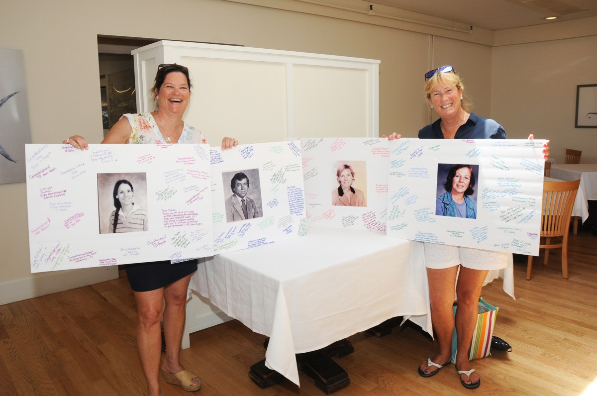Faculty (current and retired) and friends gathered at a luncheon at Gosman’s in Montauk on Friday, June 28, to honor four teachers — Brad Dickinson, Kathy Havlik, Donna DiPaolo, and Colette Clancy — from Montauk School for their retirement. Speaker after speaker emotionally recounted Montauk School tales and shared inside jokes.