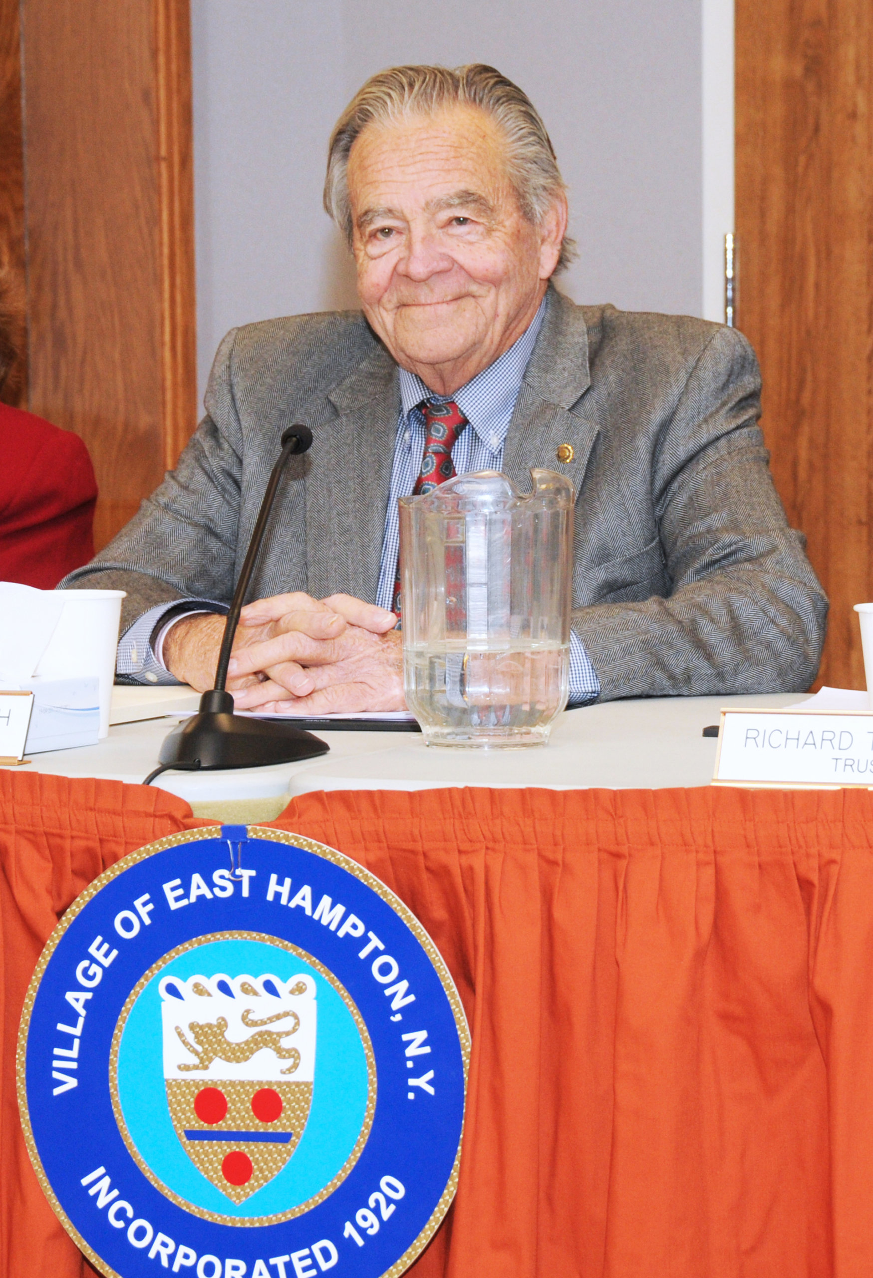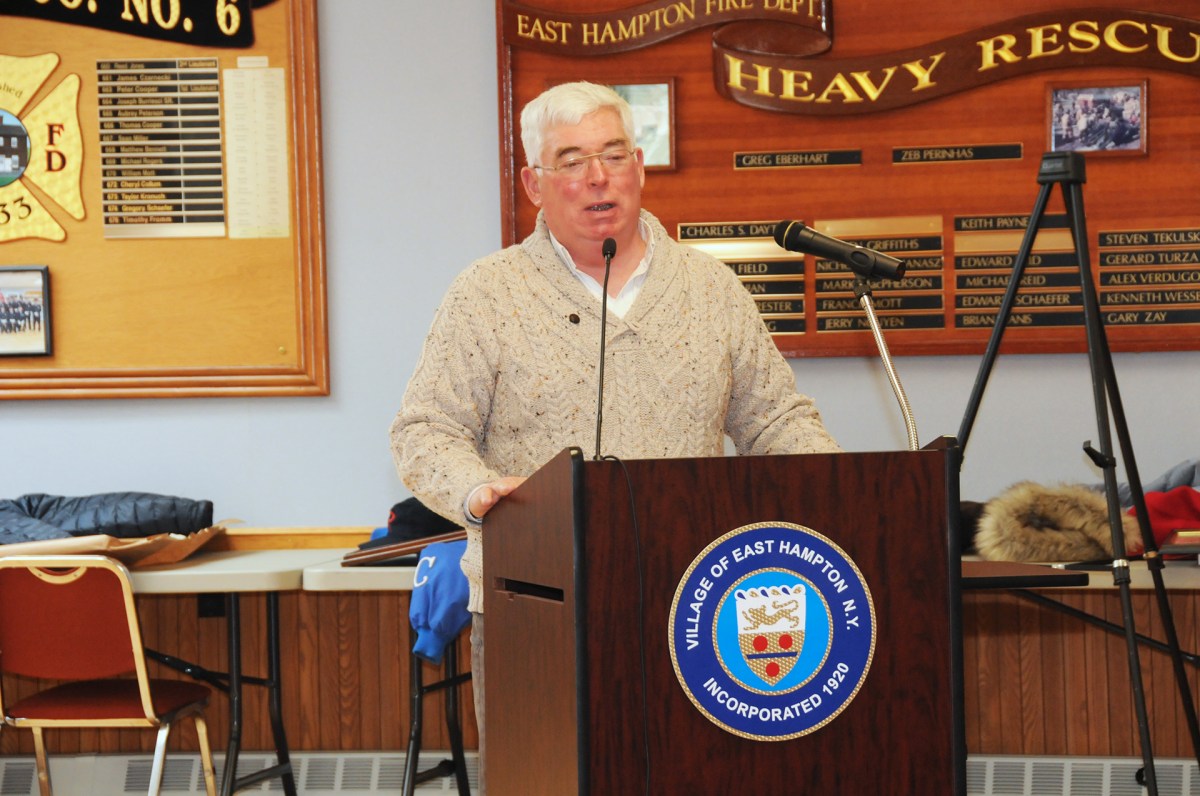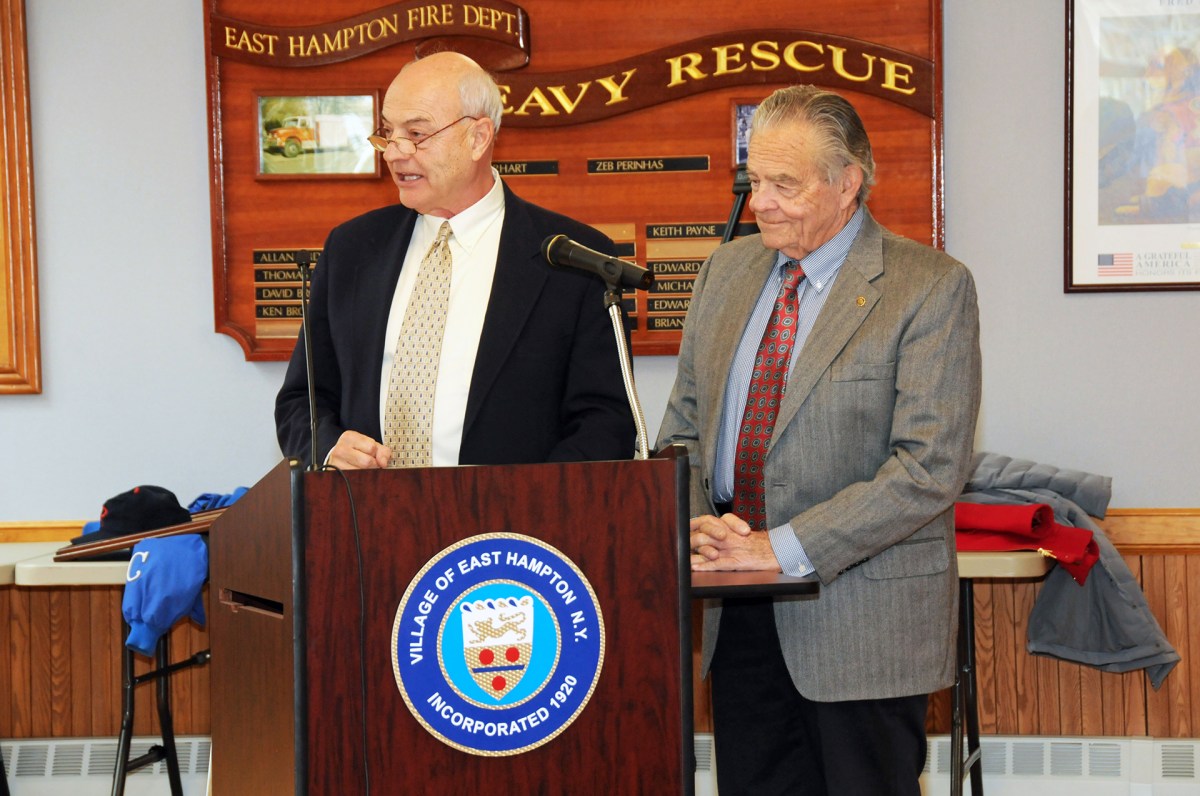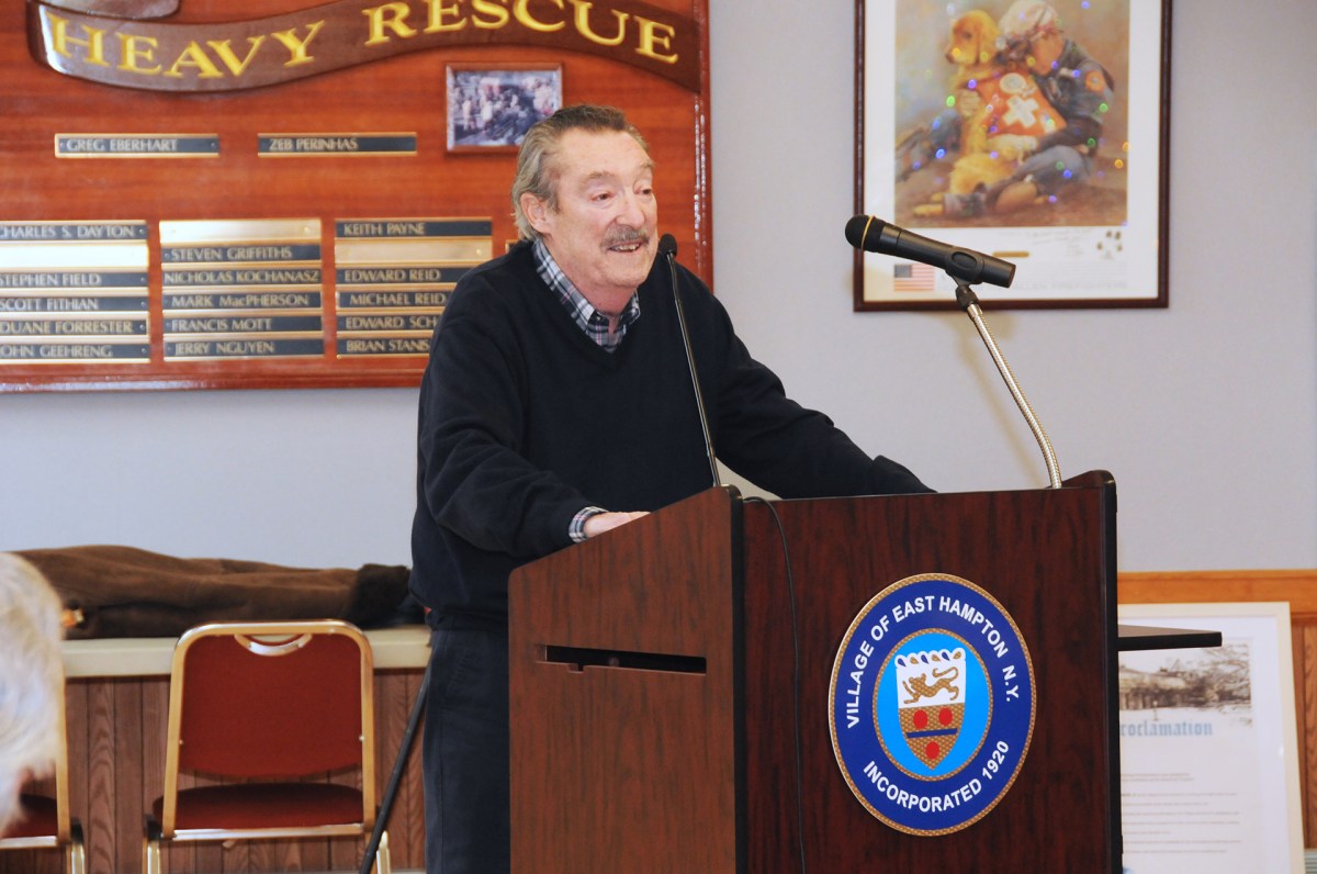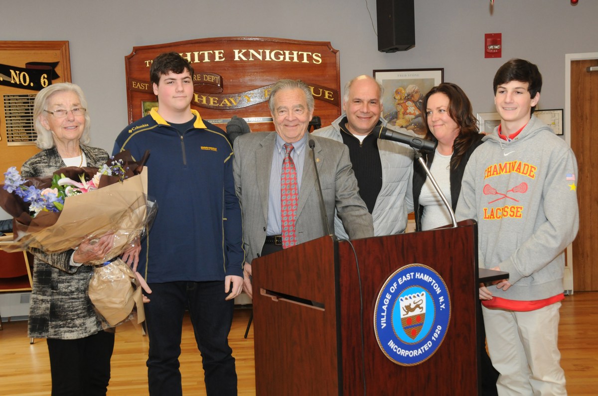 During the meeting, the departing mayor was lauded by local dignitaries and politicians, including Assemblyman Fred Thiele, state Senator Ken LaValle, and former village administrator Larry Cantwell, who also served as East Hampton town supervisor after three decades in village hall.