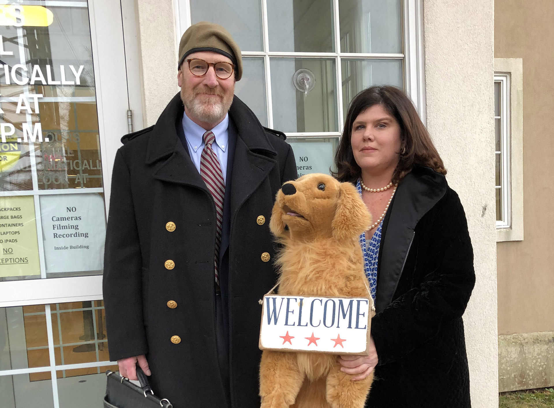 A code enforcement officer for the village, Robert Jahoda, wrote the charges up against Moeller on November 8. Moeller’s attorney, Daniel Rodgers, did not dispute certain facts in the case, including that Moeller had placed two large plush stuffed dogs outside her toy store, along with a chalkboard for children to write on. On one of the stuffed animals, a Golden Retriever that Moeller said during her testimony was named “Happy” by her daughter, had a wooden welcome sign around his neck.