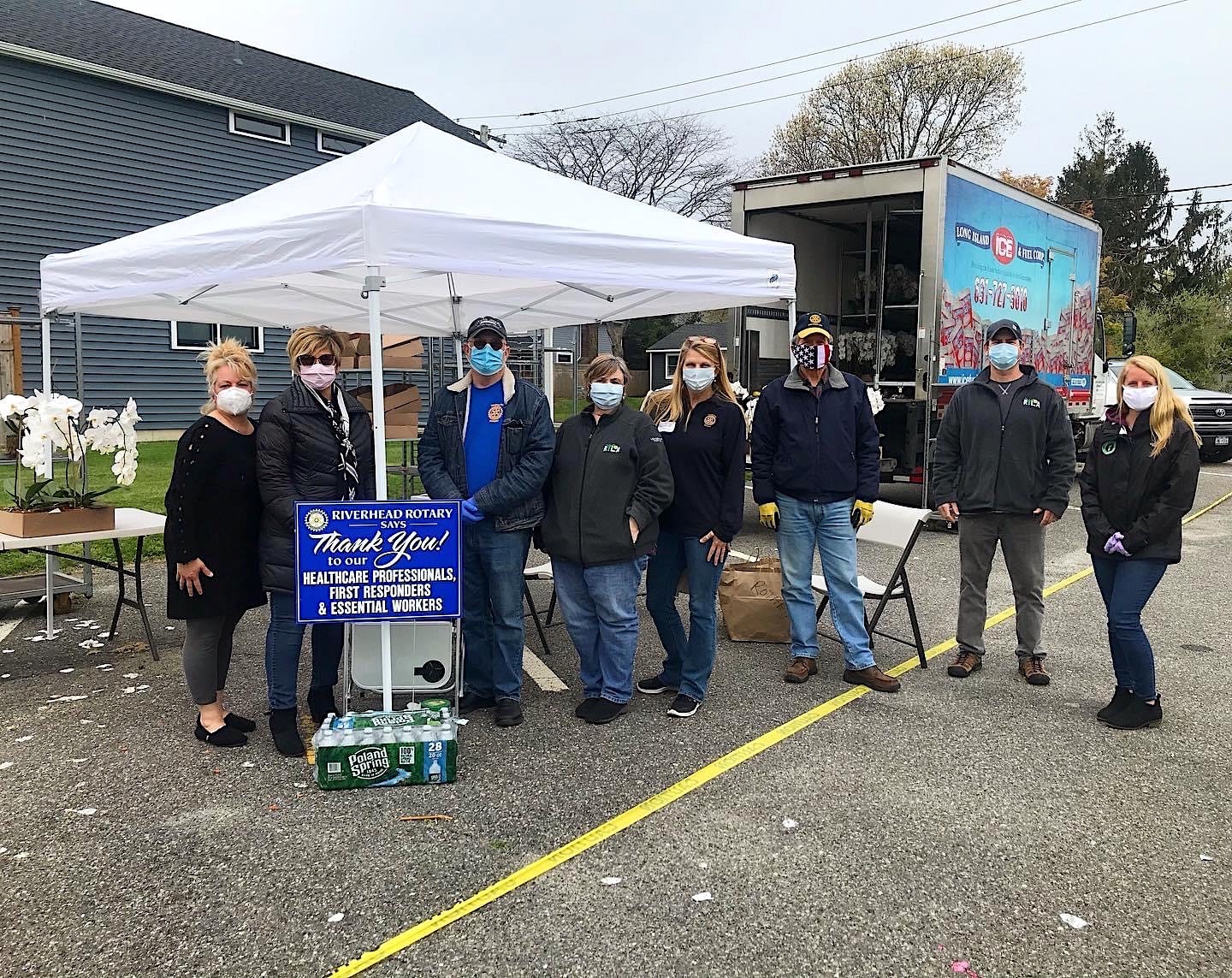 Multiple Rotarians from each club donated their time to distribute truckloads of orchids, hydrangeas, and other blooms to hospital staff from Eastern Long Island Hospital’s employee parking lot. The volunteers braved drizzly weather conditions from 7 AM to 7 PM, and brought not only the flowers, but a great deal of joy, the hospital said in a statement.